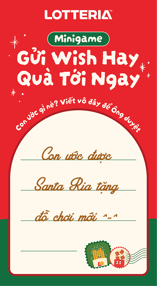 Mua combo Giáng Sinh tại Lotteria để nhận bộ thiệp Ria Wishmas